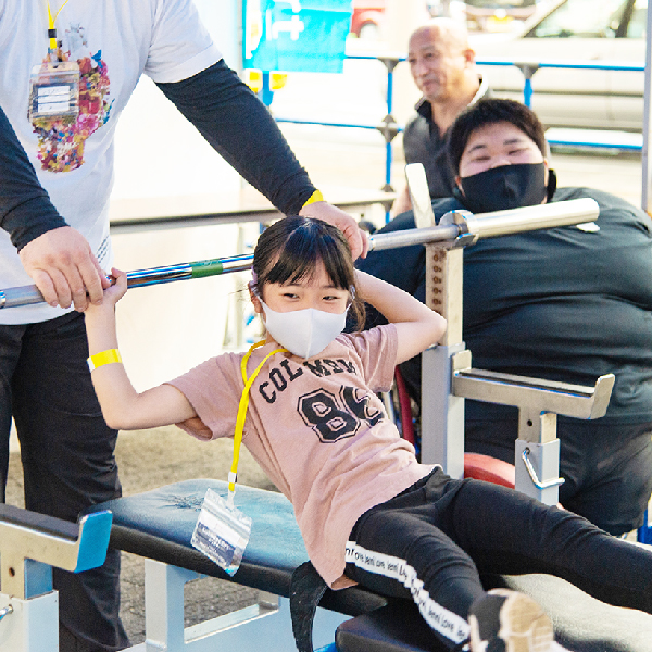 (講師:河室隆一)レーサー用の車いすに乗り、ローラーを漕ぎどのくらいのスピードが出るかを競い合います。迫力とスピード感を体感してみましょう。