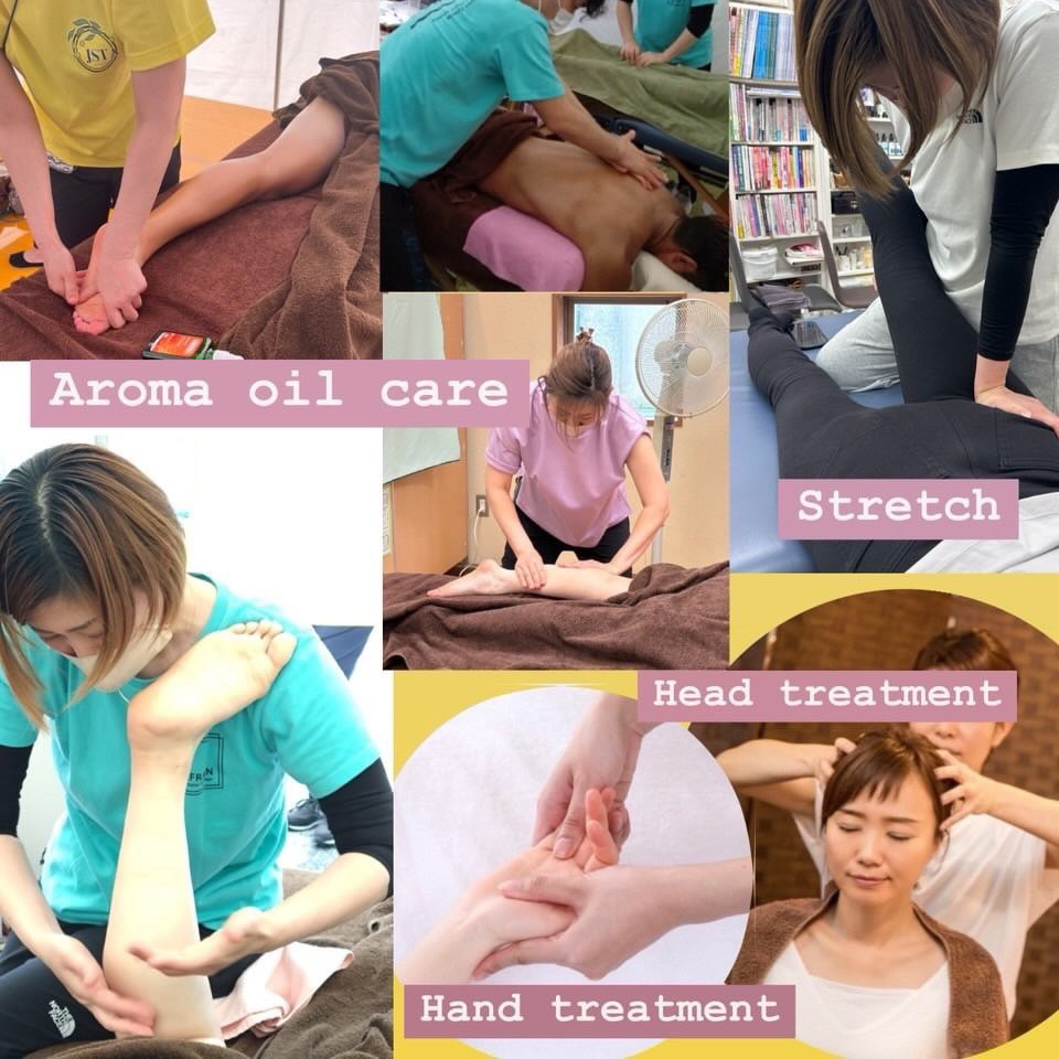 (担当:藤井 友美)アロマテラピー(精油の香りや成分で心身のバランスを整える)をスポーツの分野に活かしたもので、香りやオイルで筋肉の緊張をほぐし、怪我予防や疲労回復をサポート。ホルモンや自律神経のバランスも整え、心身のコンディションを高めます。ハンド・ヘッドトリートメントもご提供。お気軽にお越しください。