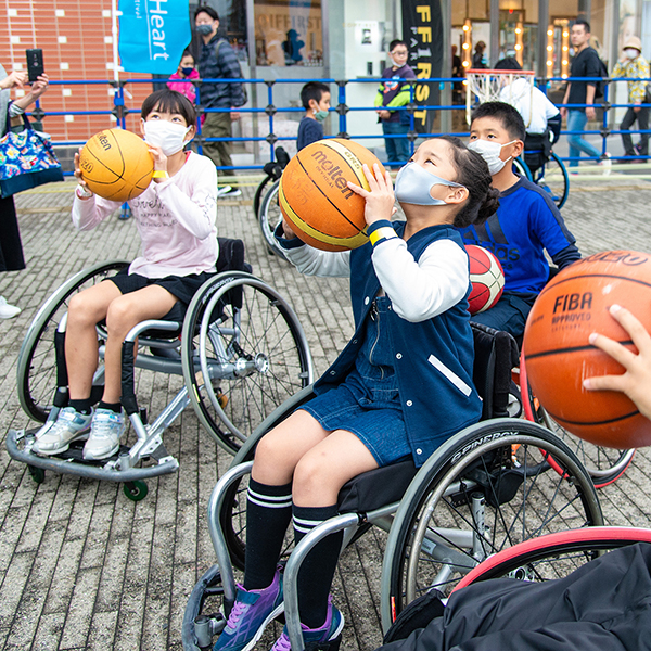 競技用の車いすを巧みに操作しながらプレーするバスケットボール。一緒にフリースロー対決をしてみよう。