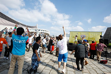 スポーツ・オブ・ハートの主旨に賛同する総勢100組を超えるアイドルたちが集結し、「アイドルフェスinスポーツ・オブ・ハート」を開催。屋内1ステージ・野外4ステージを舞台に、明るく元気なパフォーマンスでイベントを華やかに盛り上げていました。何組かのアイドルグループはスポーツプログラムにも参加し、障がいのある参加者やアスリートたちと交流を深めていました。アイドルを観に来場したファンの方たちが障がい者スポーツに興味を持ってもらうきっかけなったようです。
