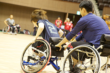 初めて競技用の車椅子に乗った参加者たちの「難しいー!」という声が体育館に響いていました。