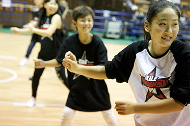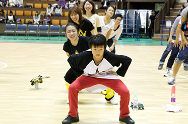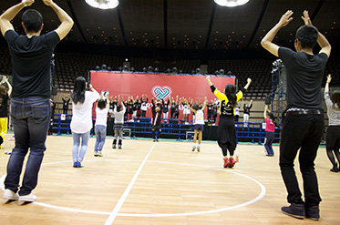 EXILE PROFFESIONAL GYMによるダンスレクチャープログラム。エンターテイナーのプロを育てるEXILE PROFFESIONAL GYMのインストラクターが「チューチュートレイン」の簡単なバージョンをレクチャー。簡単なバージョンといえどもレクチャーはもちろん本格的。最後には子どもから大人まで大勢の参加者が一緒に踊り、会場中が笑顔でいっぱいに。
