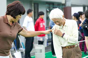 小山田さんも自身のショットを披露。片腕とは思えないほどの美しいフォームと力強い弾道に参加者から感嘆の声が上がりました。