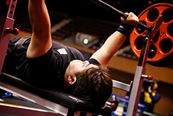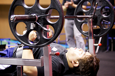 世界大会で活躍するパワーリフティングの大堂秀樹選手と三浦浩選手が、実際の競技さながらのリフティングを披露。パワーリフティングはスクワット、ベンチプレス、デッドリフトの3種目で重量を競い合い、トータル重量で順位を決定する競技。上半身だけで重たいバーを挙げる姿は圧巻で、バーが上がるたびに会場から歓声が上がっていました。