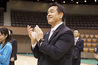 予定より早めに会場入りした馳文部科学大臣が二人のパフォーマンスを視察。元プロレスラーの馳大臣からも熱い拍手が送られました。