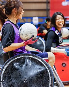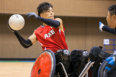 車イスを走らせるだけでも大変なのにボールを投げたり、キャッチしたり。