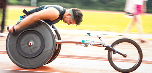 車いすランナーの安岡チョークさん、花岡伸和さん、そして廣道純が競技用のレーサー(車イス)の乗り方や走り方をレクチャー。体験して初めて知る障がい者アスリートのすごさ。参加者からは感嘆の声が上がりました。