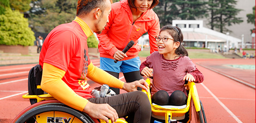 障がい者アスリートたちと実際に触れ合い、障がい者スポーツに興味を持ってもらうことを目的としたスポーツプログラム。天候にも恵まれ、2日間にわたり全13プログラムすべてを無事実施することができました。初めて見る競技用の車いすや初めて体験する障がい者スポーツ───感動と発見に溢れた子どもたちの表情が会場のあちこちに溢れました。