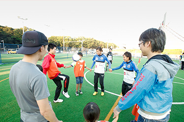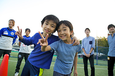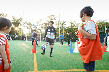 なでしこリーグ2部所属のスフィーダ世田谷FCの選手たちによるサッカー教室。現役で活躍する選手たちのあざやかなプレーを学べるチャンスに、たくさんの子どもたちが参加してくれました。サッカー初心者でも楽しめるように、遊んでいる感覚で自然とサッカーを教えてくれるプログラムで、フィールドには子どもたちの笑顔が溢れました。