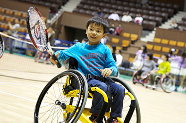 インストラクターに国内外で活躍する竹田有治選手を迎え行われた、車いすテニス体験プログラム。国枝選手の活躍で目にすることも多い競技ですが、観るのとやるのとでは大違い、参加者からも「思っている以上に難しかった」という声が多く聞かれました。初めての体験をした子どもたちの興奮した様子が印象的でした。