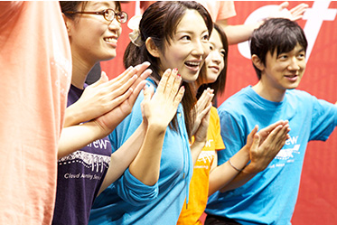 朝一番のオープニングセレモニー前のプログラムということもあり、アスリートのみなさんや他プログラムの出演者も参加。体験後の心も身体もスッキリした爽やかな笑顔が印象的でした。