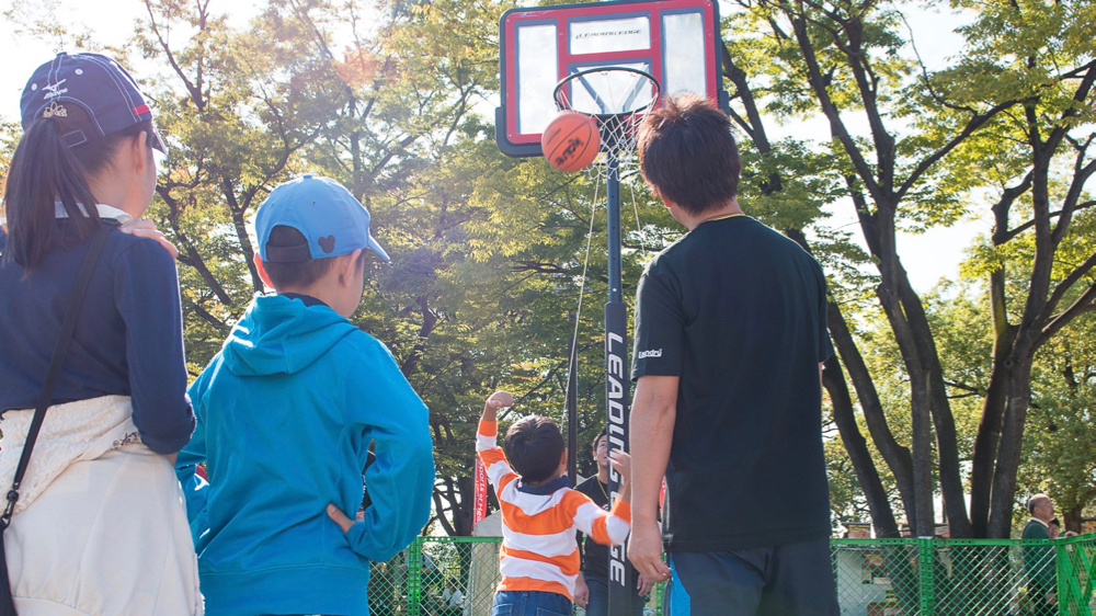 アトラクションエリアには時間帯によってアスリートたちが遊びに来ます!一緒にスポーツ体験ができたり、