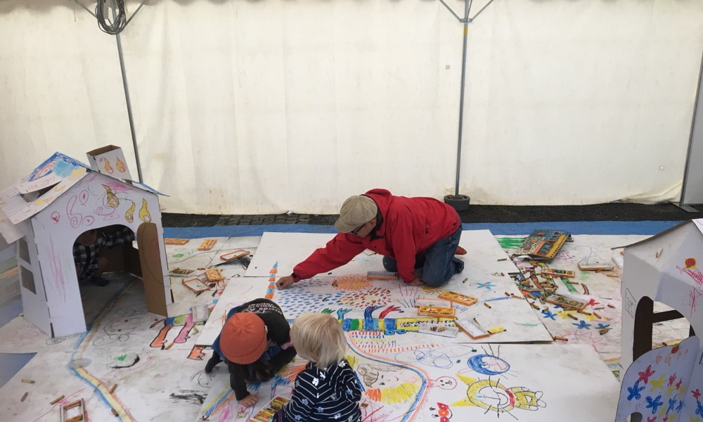 1971年長崎市生まれ。聾唖(ろうあ)者のご両親の元に生まれ、幼い頃から絵を用いてご両親とコミュニケーションを取っていた門さん。「絵・手話・コミュニケーション」をキーワードにしたアート活動を広げる中で、その独特なスタイルが注目され、日本各地で、共通言語にとらわれない、コミュニケーションで心を繋ぐワークショップを開催している。