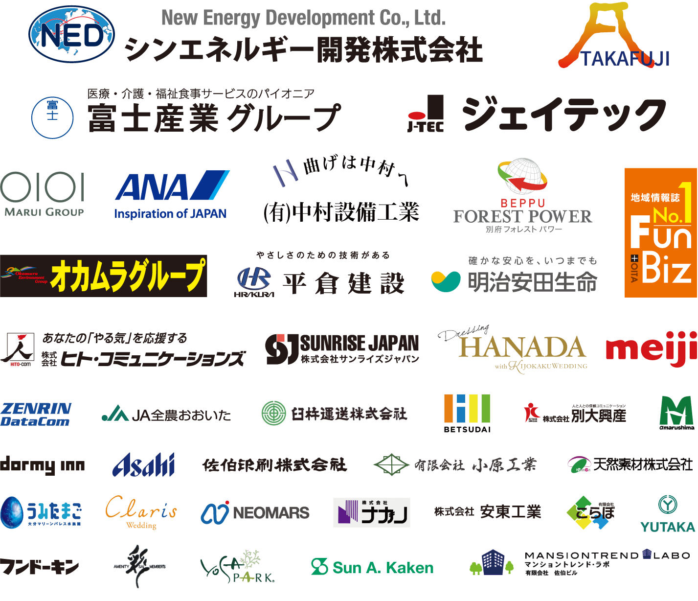 朝日警備保障株式会社 / 立石建設工業株式会社 / 株式会社西日本農業社 / 医療法人麻生歯科 / 株式会社TAMAYA / 株式会社疋田建築 / 大分県漁業協同組合 / 有限会社 辻や わだひこ / 株式会社平和建設 / 大分リース株式会社 / 有限会社豊田商会 / ポートラインサービス有限会社 / 株式会社共伸 / 株式会社トーヨーフロンティア / 株式会社マルミヤストア / 三和酒類株式会社 / 有限会社中島石油店 / ミス・アース・ジャパン大分 / 有限会社ダスキン臼津 / 中村産業生コン株式会社