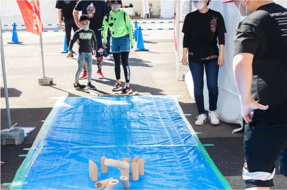 バッゴーとは、6m 先のボードの穴にビーンバックを入れる単純なゲームで子供から高齢者、車椅子の方まで誰もが一緒に楽しめるレクリエーションゲームのひとつです。