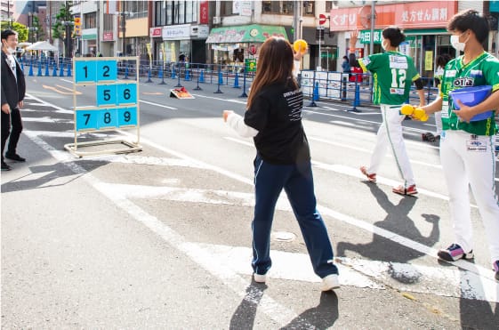 大分のプロ野球チーム「B-rings」のブースではストラックアウトを実施。インストラクターのプロ野球選手に挑戦してみよう!